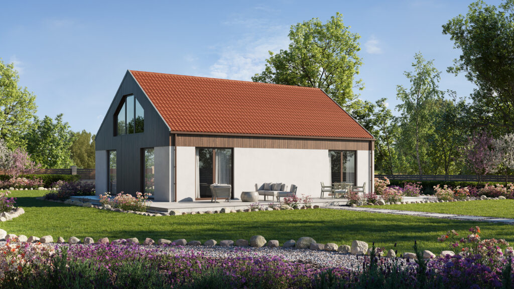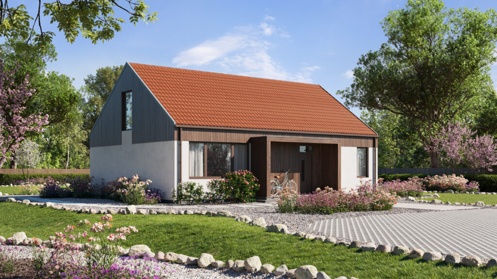 Ten przytulny i funkcjonalny dom jednorodzinny to idealne miejsce dla osób ceniących spokój i harmonię z naturą. Połączenie nowoczesnej estetyki z klasycznym dachem dwuspadowym nadaje budynkowi wyjątkowego charakteru